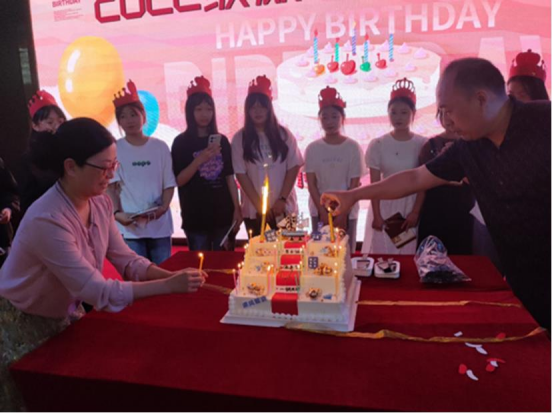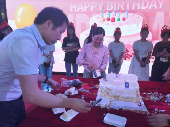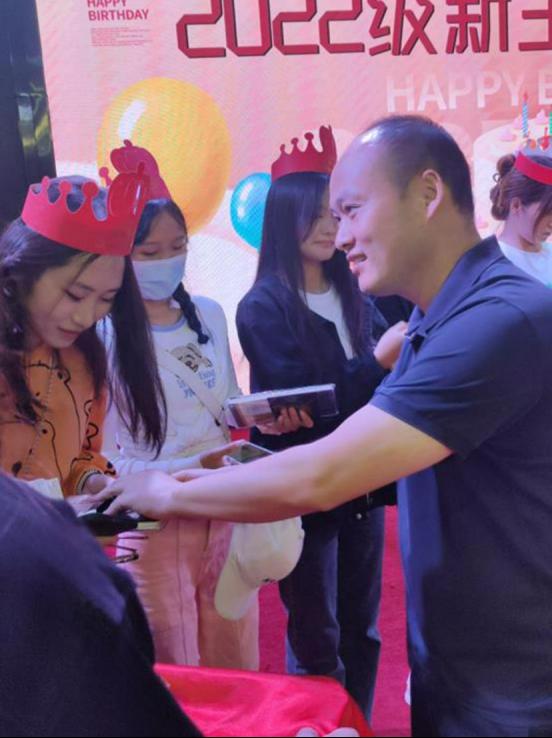 随后,在全体学生的见证下,由学院领导班子和22级新生辅导员依次为同学们戴生日帽,唱生日歌,发送生日礼物,在现场同学们许下了自己的生日愿望,大家一起吹灭蜡烛之后,老师们又为同学们切分蛋糕,现场欢声笑语,其乐融融。