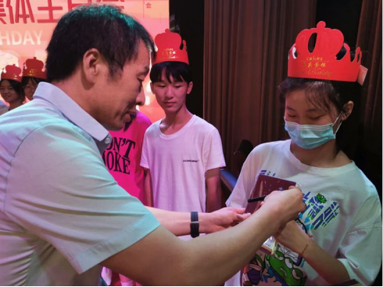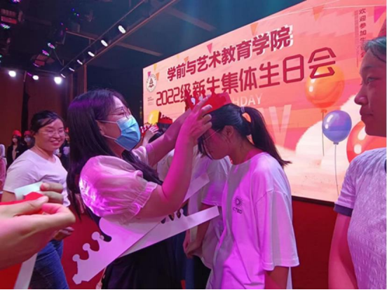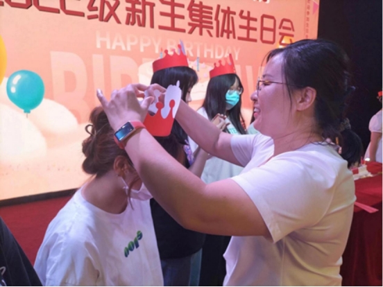 辅导员为同学们戴生日帽