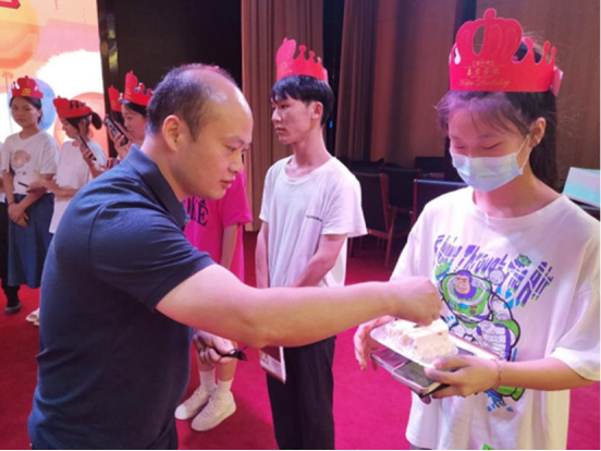 党总支书记王春生、院长高岐奎为同学们分发生日礼物