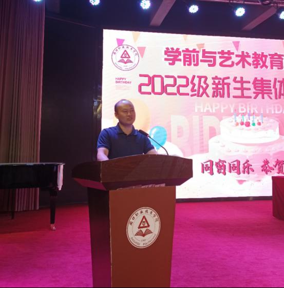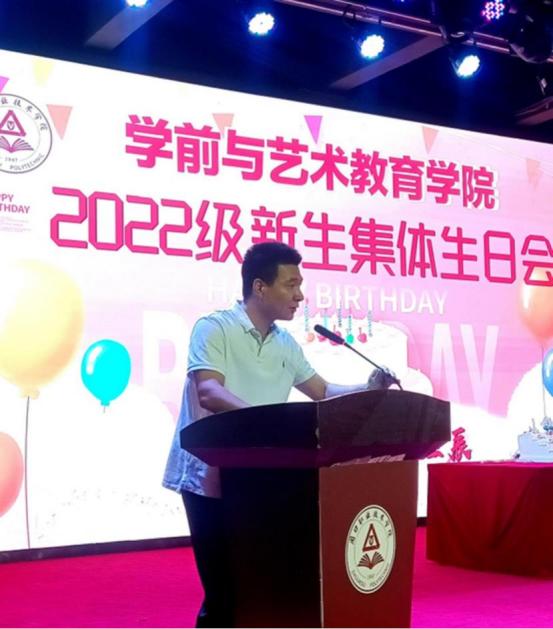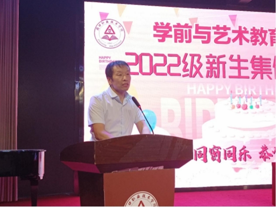 院长高岐奎代表全体老师热烈欢迎2022级新生的到来,衷心祝愿同学们生日快乐。他勉励大家要尽快适应大学生身份,摆正自已的位置,珍惜时光,努力学习,学会独立,主动思考,让自己做一名追梦的大学生。