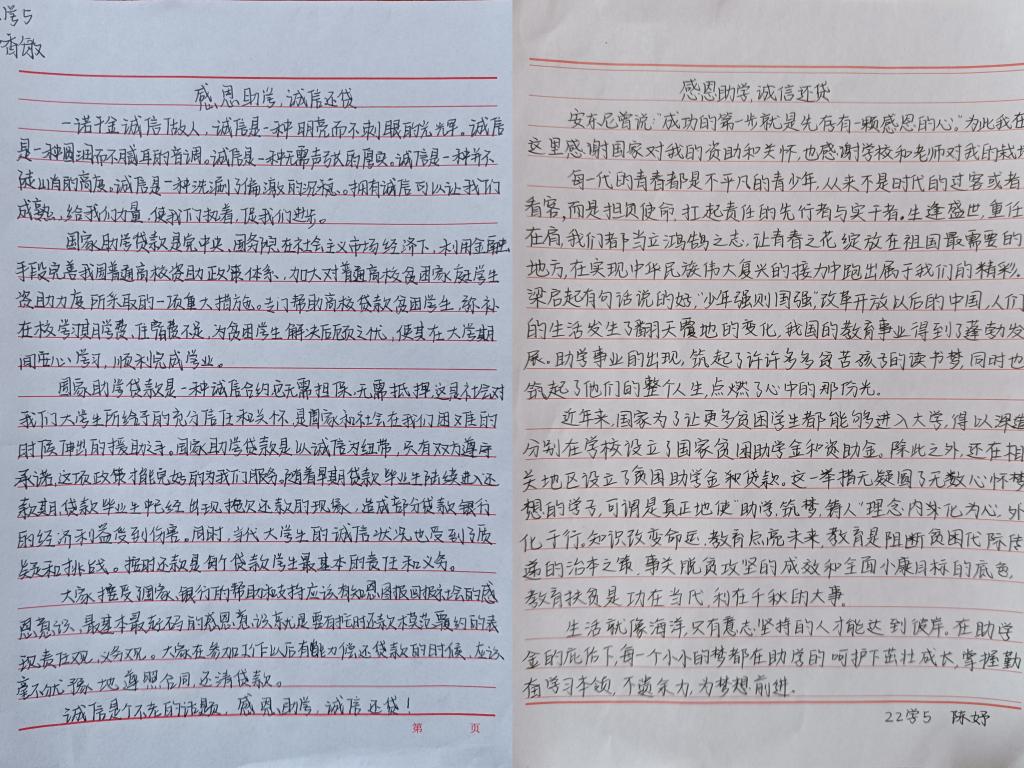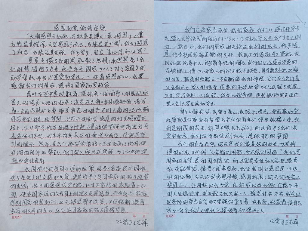 同学们挥笔泼墨、积极投稿,表达着对国家资助政策的感激和对学校及家人的感恩之情。文中语言朴实,情感流露,让人内心久久不能平静。